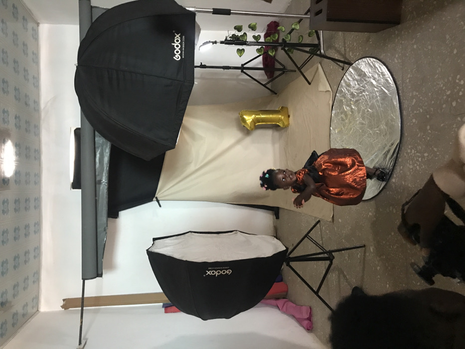An indoor photography studio scene is depicted in Gura Top, Nigeria