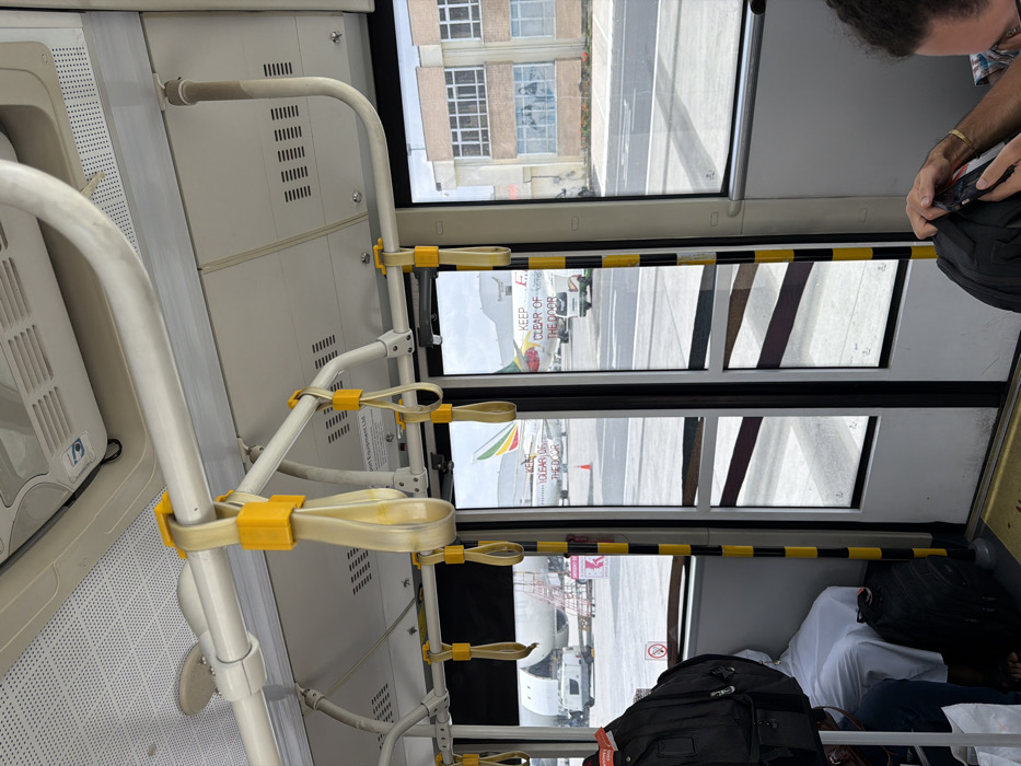 - "The image depicts the interior of an airport shuttle bus at Bole International Airport in Addis Ababa, Ethiopia, viewed from a passenger's perspective" by FM-Uz1Dk1, licensed under CC BY 4.0