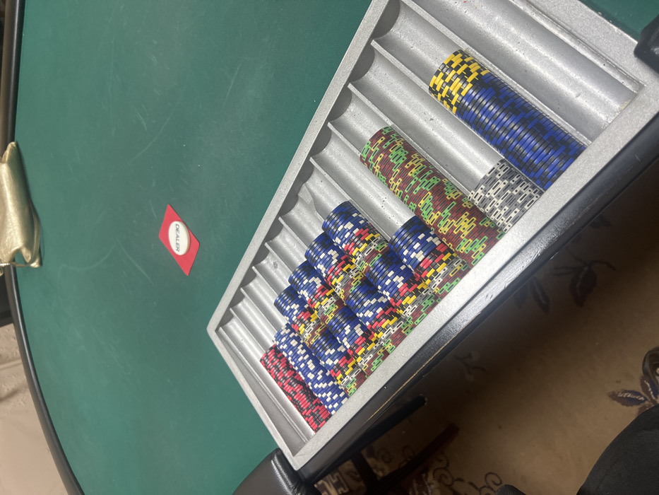 - "The scene, located indoors in the city of Smederevska Palanka Municipality, Serbia, depicts a portion of a poker table and its associated equipment" by FM-PhdGF3, licensed under CC BY 4.0