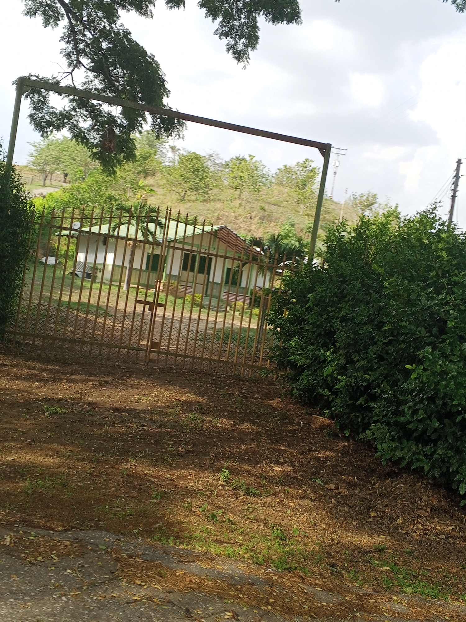 The image depicts a gated entrance to a property in Los Leoncitos, Venezuela