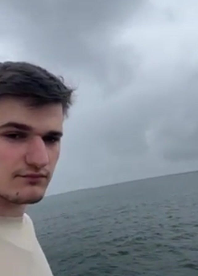 A young man stands on the deck of a ferry or similar boat, facing the camera