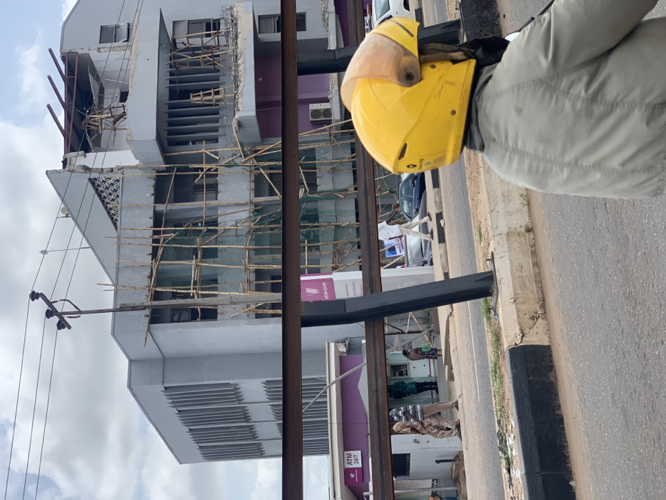 partially collapsed building under construction in the city of Ondo, Nigeria, located at coordinates 7