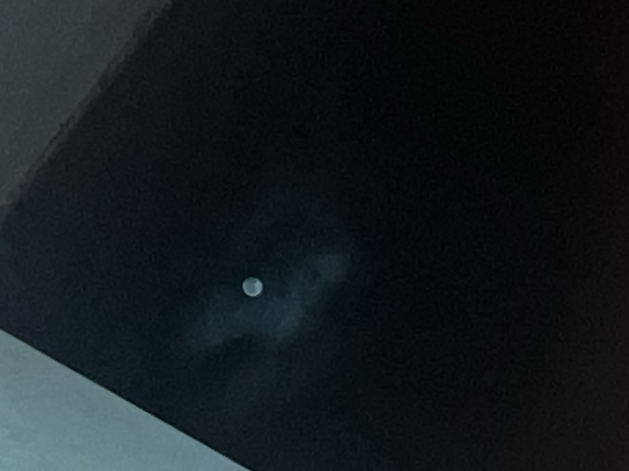 night scene with a full moon visible in the dark sky. Clouds partially obscure the moon. The bottom-left corner of the image includes part of a building, suggesting an urban location. There are no identifiable people or specific actions. It is not possible to determine the location within the city of Sofia, Bulgaria based on the image.