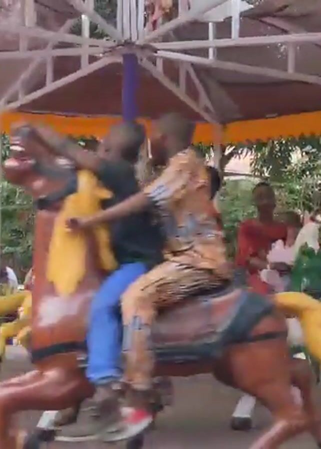 group of children riding a carousel