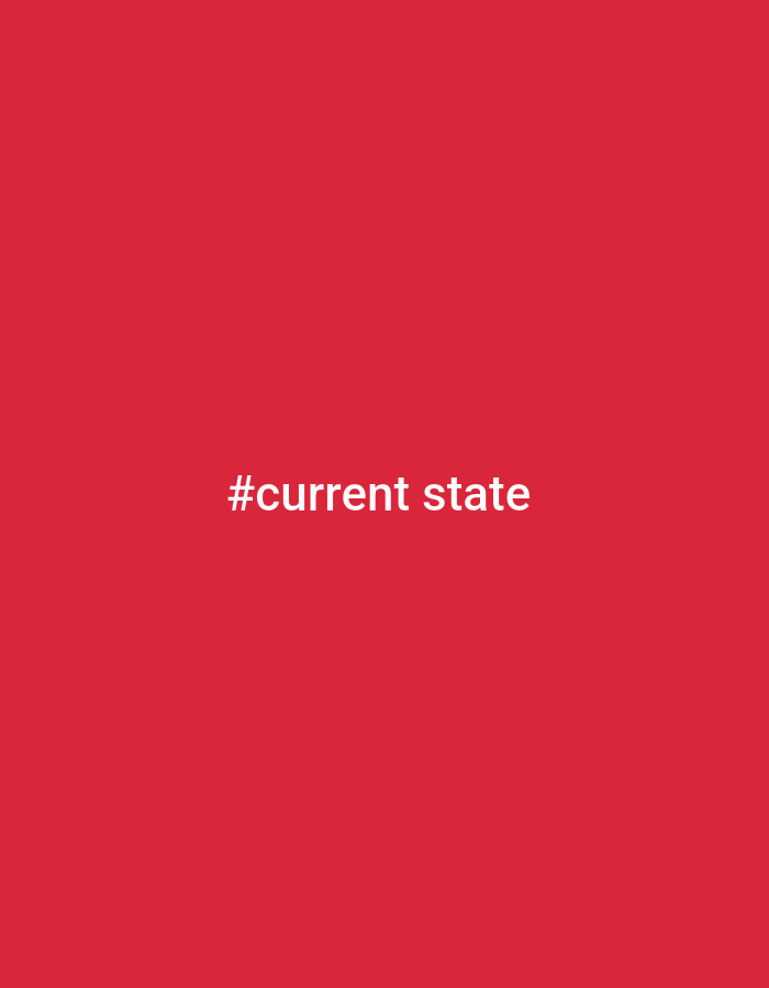 A digital image displays a solid red background. White sans-serif text, centered horizontally and positioned in the lower mid-section of the frame, reads "#current state". No people, additional subjects, objects, actions, or specific environmental details are discernible. The image provides no visual information regarding a location in Barnawa, Nigeria, or any other geographic area.