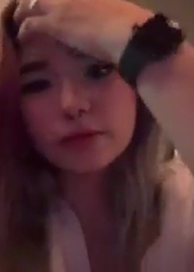 A young woman with pink and blonde hair, wearing a light-colored shirt, looks at the camera. She rests her face on her hand and pouts. The background shows a dimly lit room decorated with string lights and pennants, suggesting a festive or pub-like environment. Other people are visible in the background, and there's noise suggesting a social gathering.
