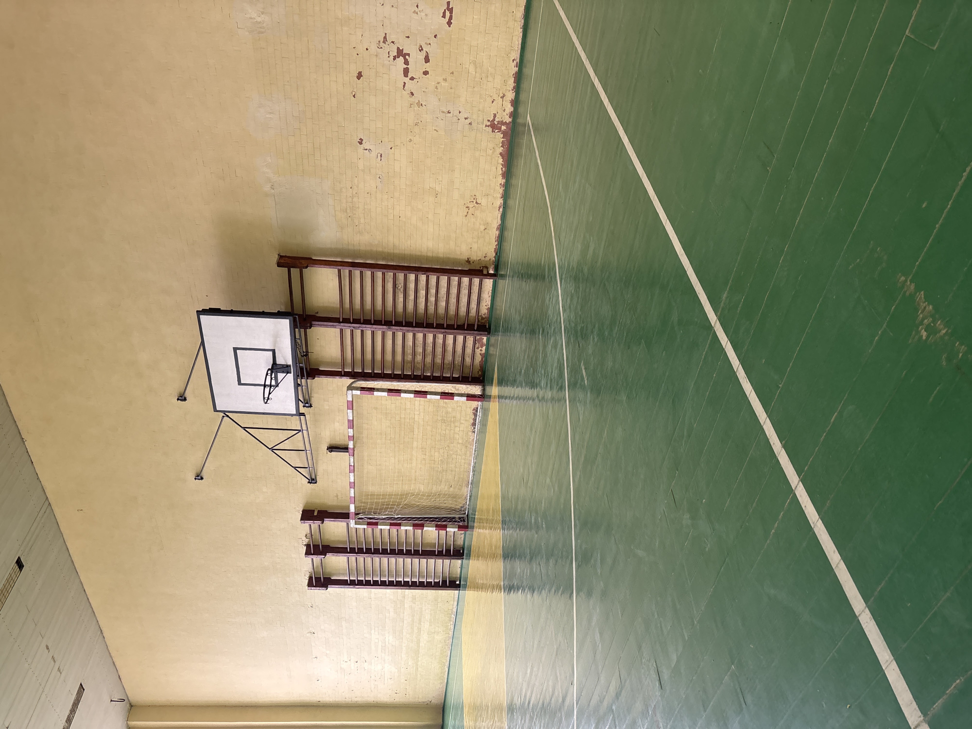 An interior view depicts an empty gymnasium located in Tutrakan, Bulgaria