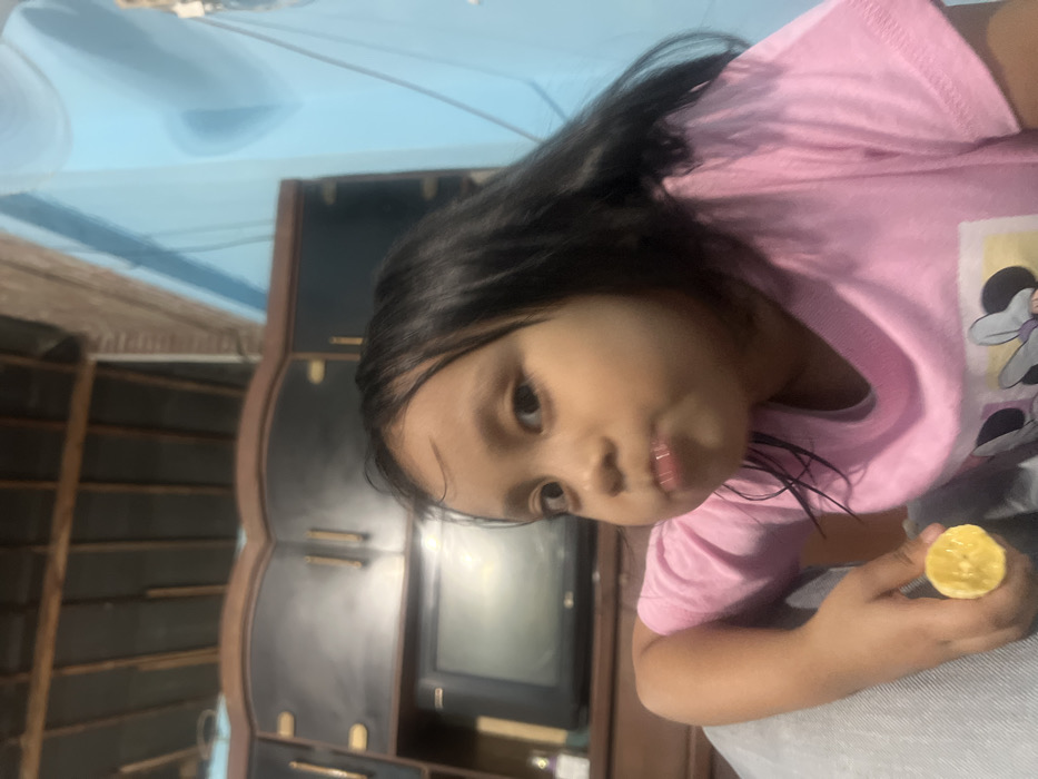 - "An indoor, close-up image depicts a young Asian child, approximately 3-6 years old, with dark hair, wearing a pink short-sleeved t-shirt with a graphic" by FM-v0QbG2, licensed under CC BY 4.0