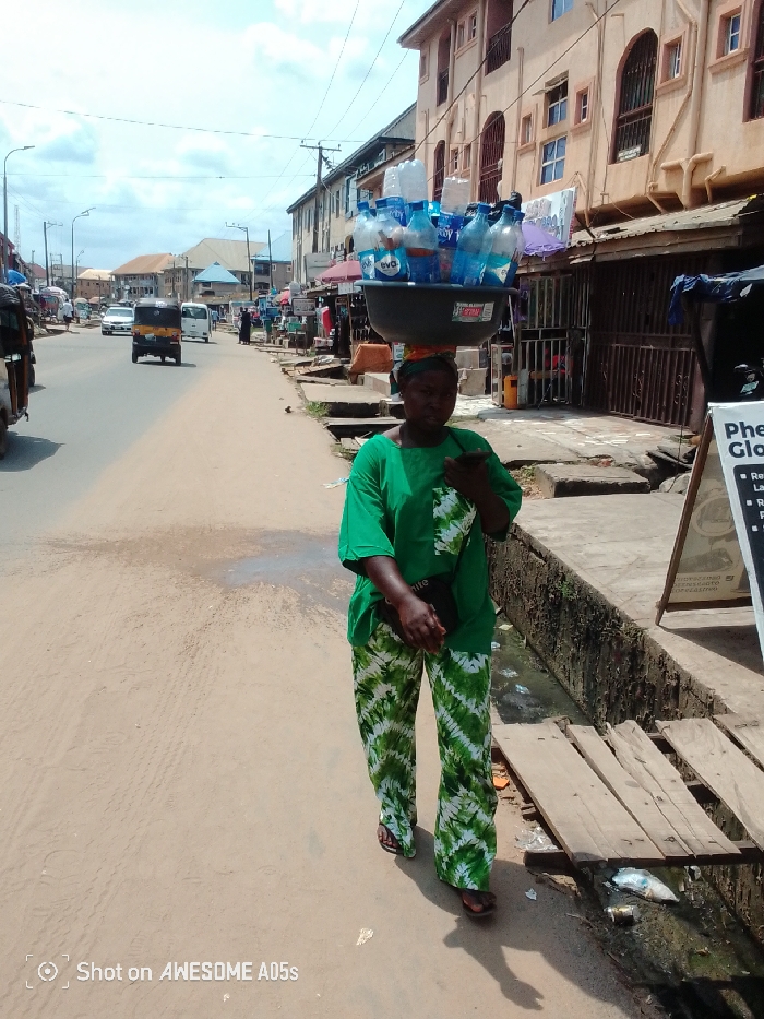 - "An outdoor street scene in Egbagu, Nigeria, depicts an adult female walking towards the viewer on a dirt shoulder to the right of a paved road" by FM-libCE3, licensed under CC BY 4.0