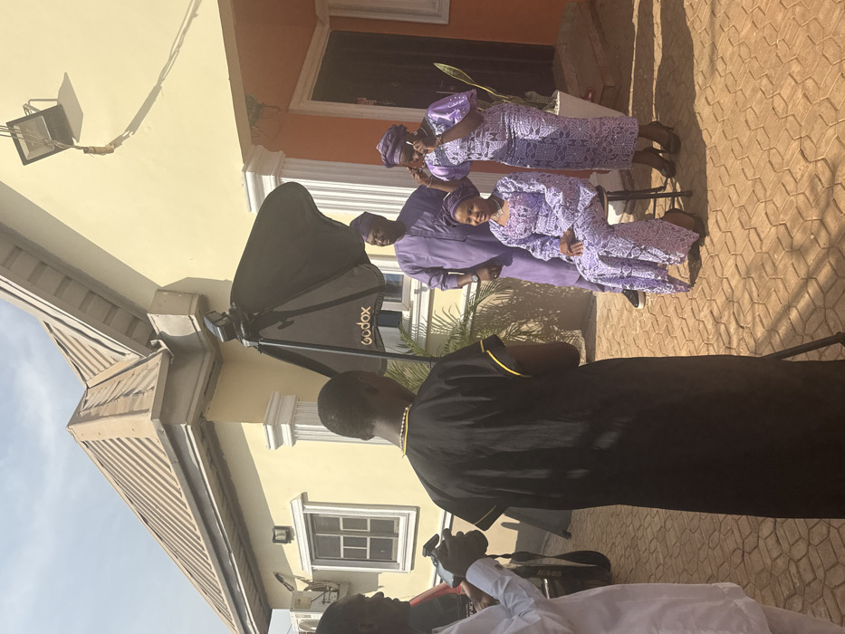 The scene depicts an outdoor photography session in Hayin Banki, Nigeria, taking place on a paved surface of interlocking reddish-brown bricks