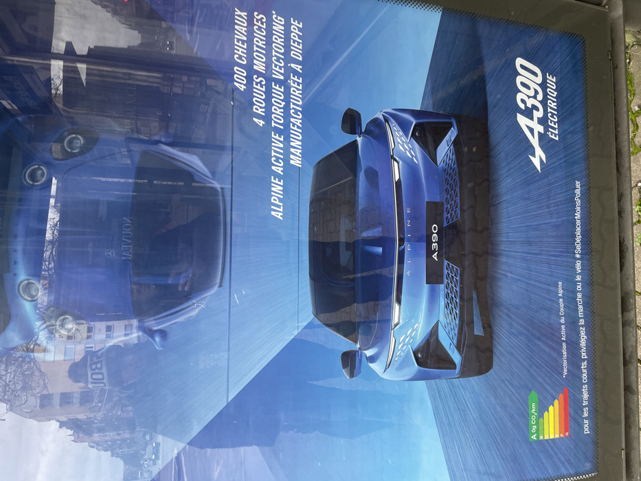 - "This image displays a large, vertically oriented advertising poster for the Alpine A390 Électrique electric car, observed on a city street in Strasbourg, France" by FM-fSpHy2, licensed under CC BY 4.0