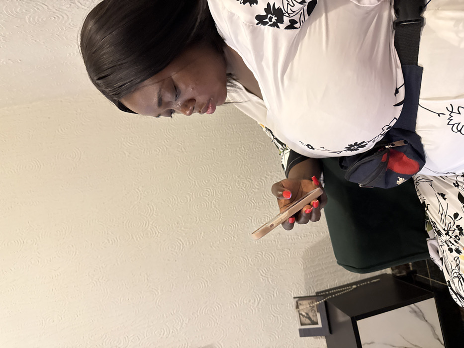 - "An adult female is depicted indoors in Barakin Akawo, Nigeria, seated and looking at a light-colored smartphone held in her right hand" by FM-drzm52, licensed under CC BY 4.0