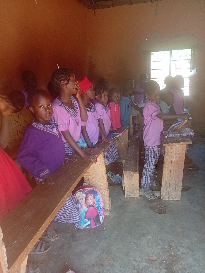 The image captures a crowded indoor space, likely a classroom, in Unguwar Gaya, Nigeria