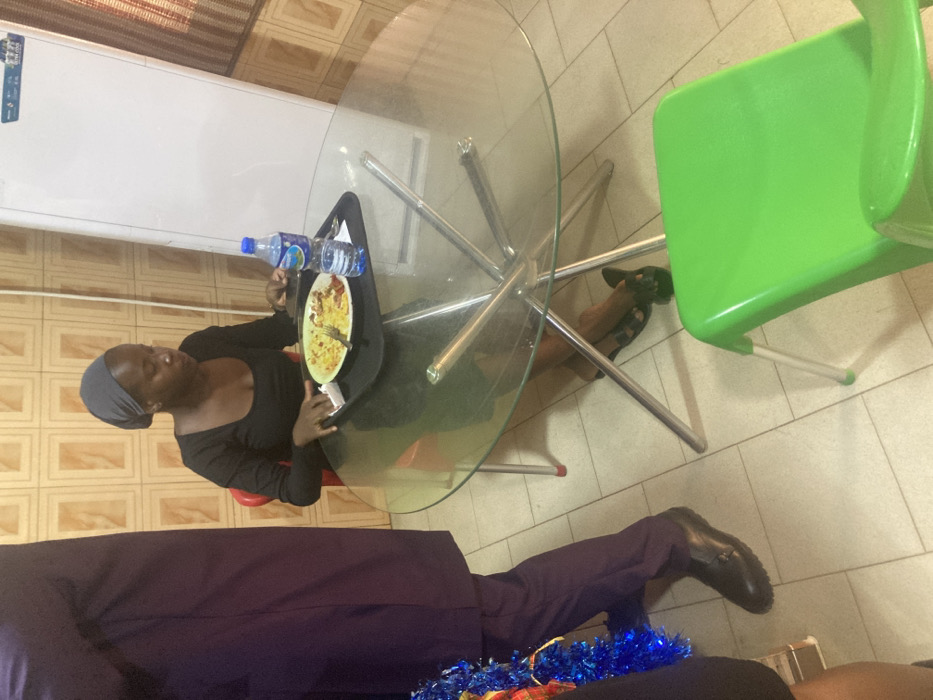 An indoor scene in Barden Yana, Nigeria, depicts two individuals and a dining area