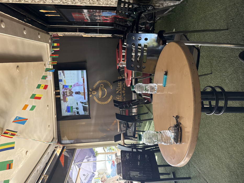 This image depicts the interior and immediate exterior of Café Niara in Salé, Morocco