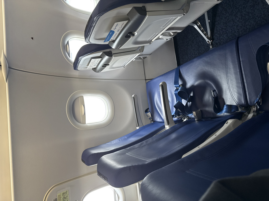 - "The interior of an airplane cabin is shown, featuring three blue leather seats in a row with metal armrests" by FM-NoYZ42, licensed under CC BY 4.0