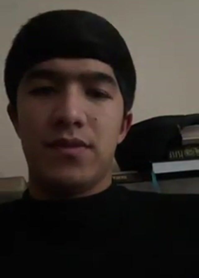 A person with dark hair wearing a black shirt and a black hair covering is centered in the frame, facing the camera