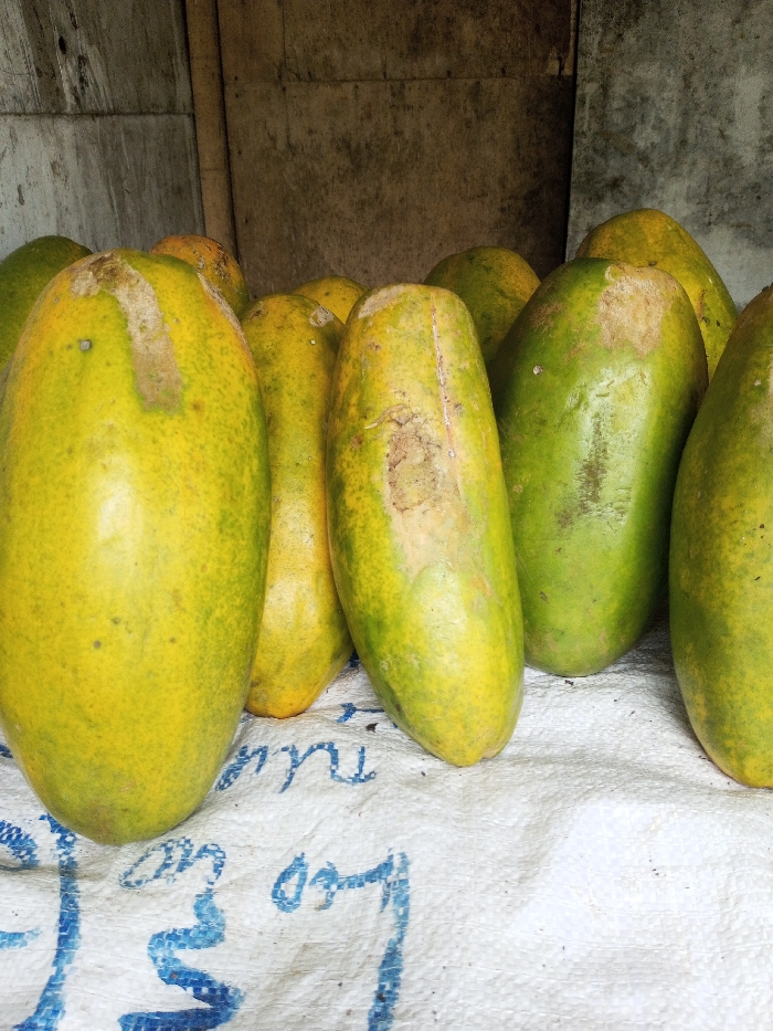 - "A group of ripe papayas are piled together, showing varying shades of yellow and green" by FM-vTEVn2, licensed under CC BY 4.0
