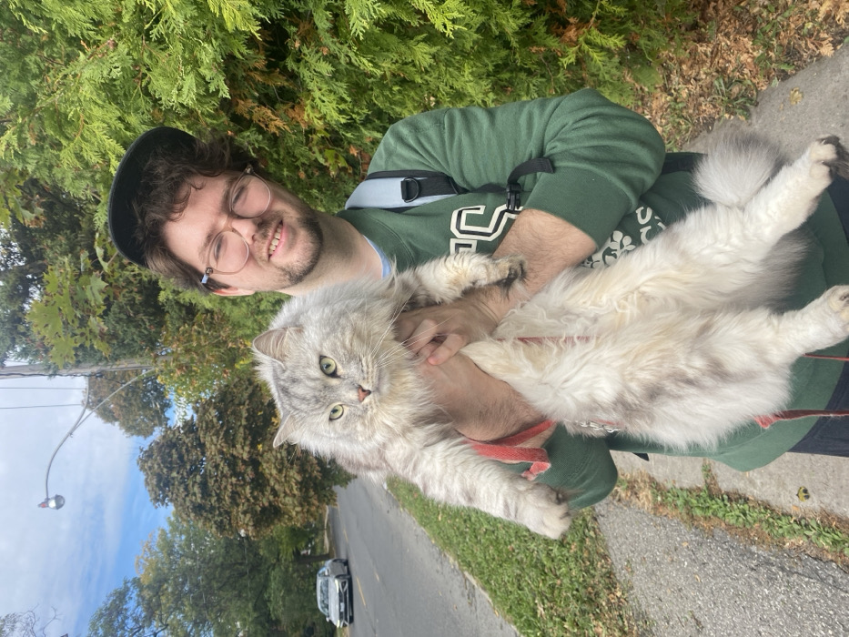 - "The image depicts a male individual holding a large cat on a residential street in Toronto, Canada" by FM-La8Z13, licensed under CC BY 4.0