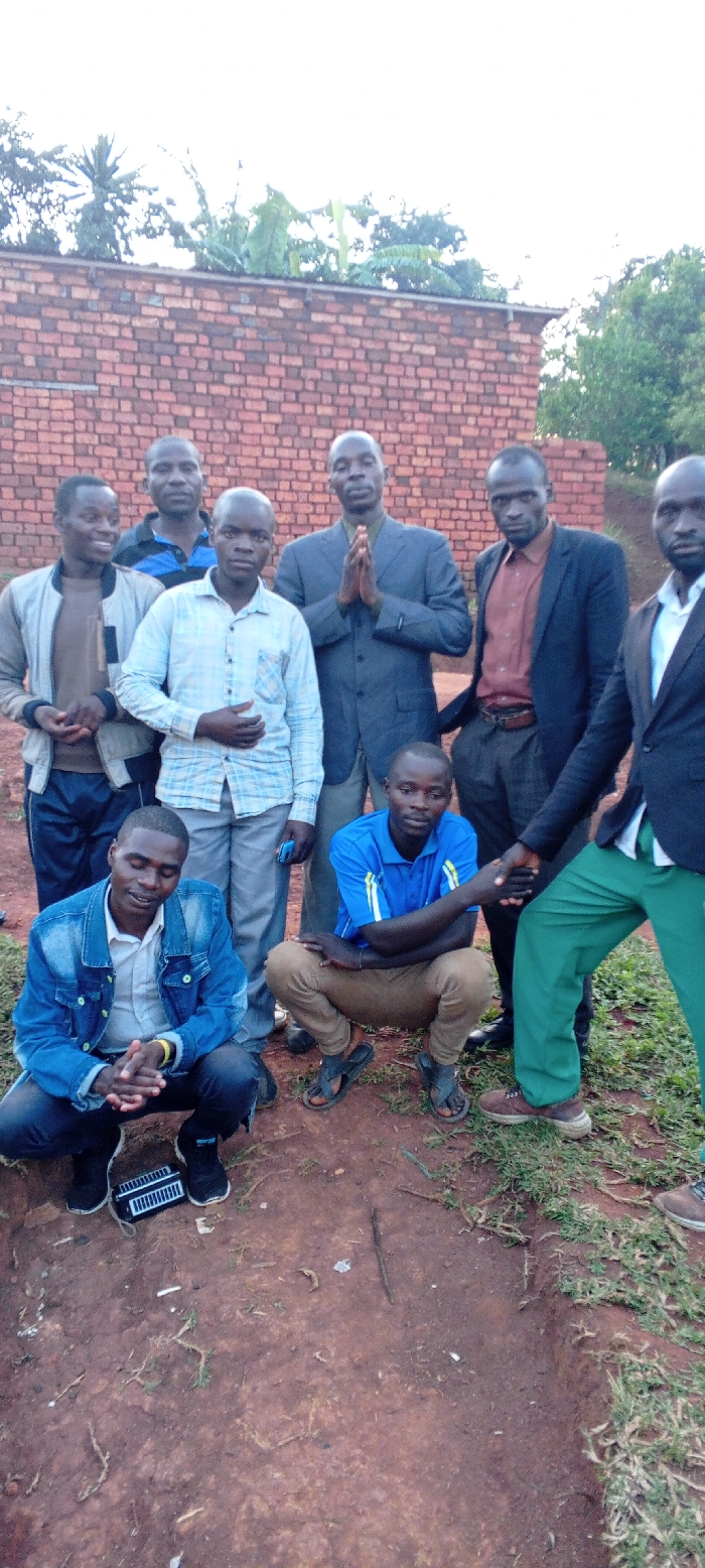 Nine adult males are present outdoors in Fizi, Democratic Republic of the Congo
