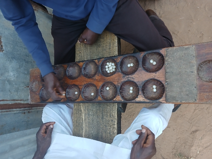 - "Two individuals are seated and engaged in playing Mancala, a traditional board game" by FM-EgUYT2, licensed under CC BY 4.0