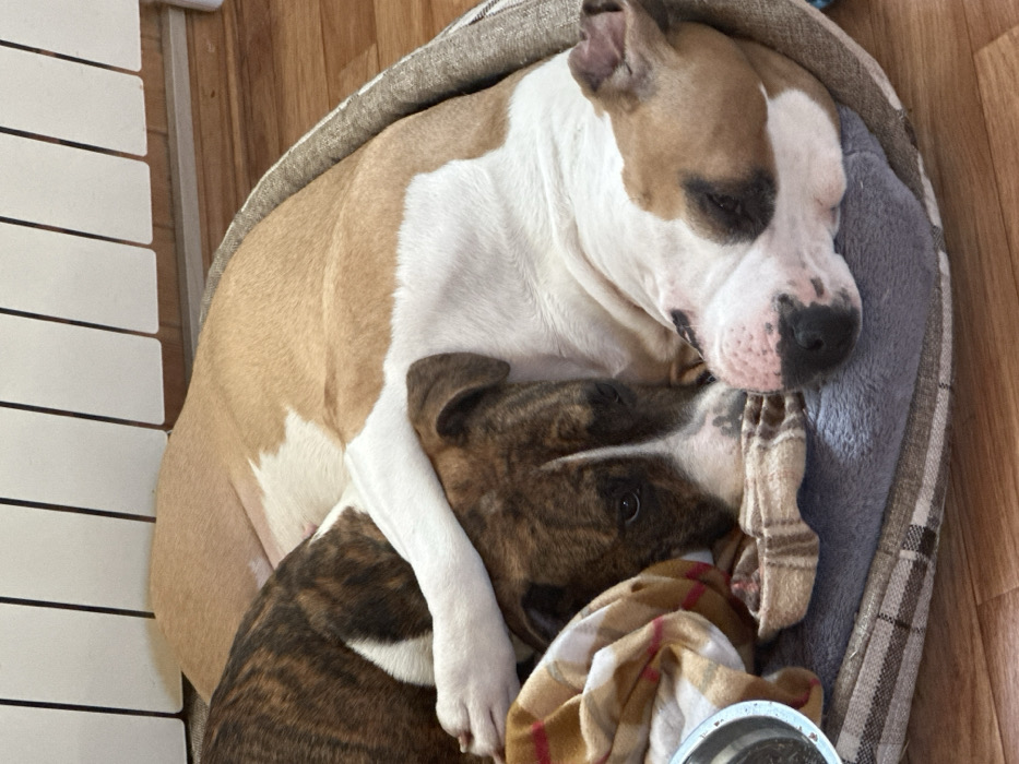 - "Two dogs cuddle in a dog bed" by FM-2t2Dl2, licensed under CC BY 4.0