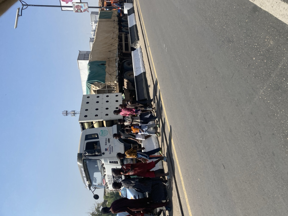 This image captures a street scene in Fagge D2, Nigeria, under clear, bright daylight