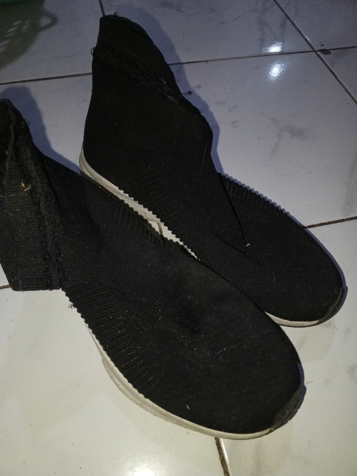 - "Two black knit athletic shoes rest on a tiled surface" by FM-Z0D4I2, licensed under CC BY 4.0