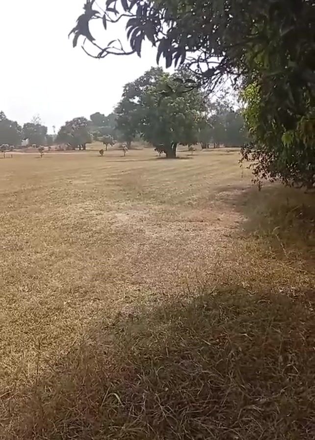 large, dry, grassy field with scattered trees