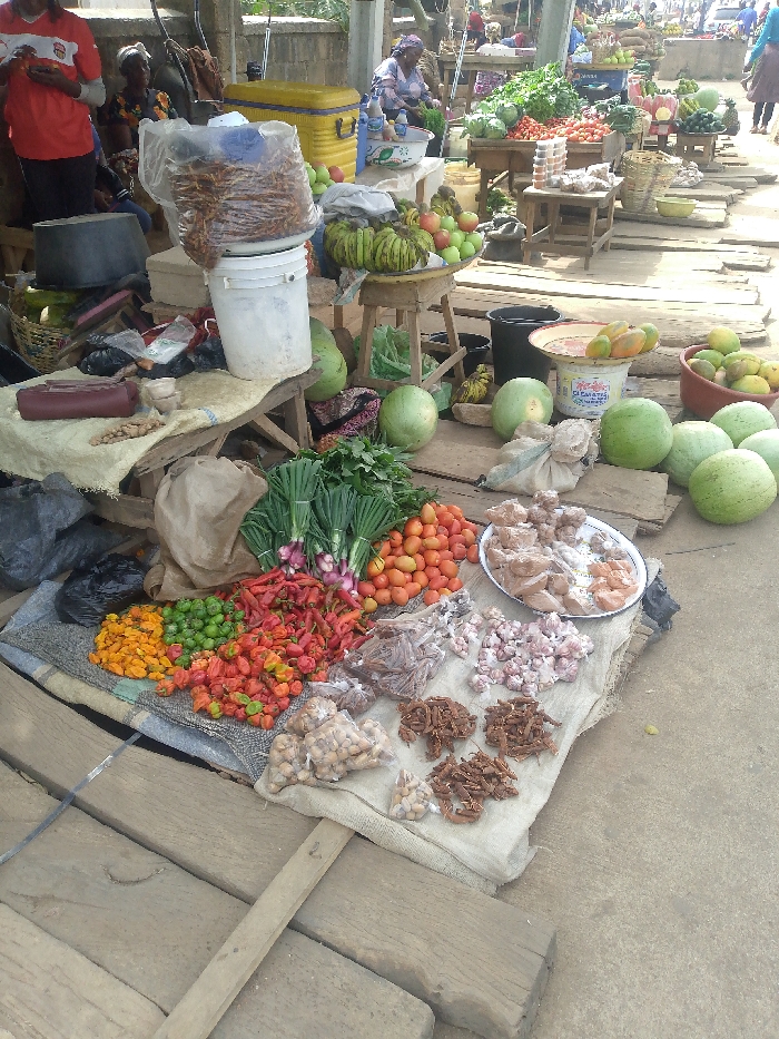 - "An outdoor market stall is depicted, likely within a bustling market area in Jos, Nigeria" by FM-eBDcX2, licensed under CC BY 4.0