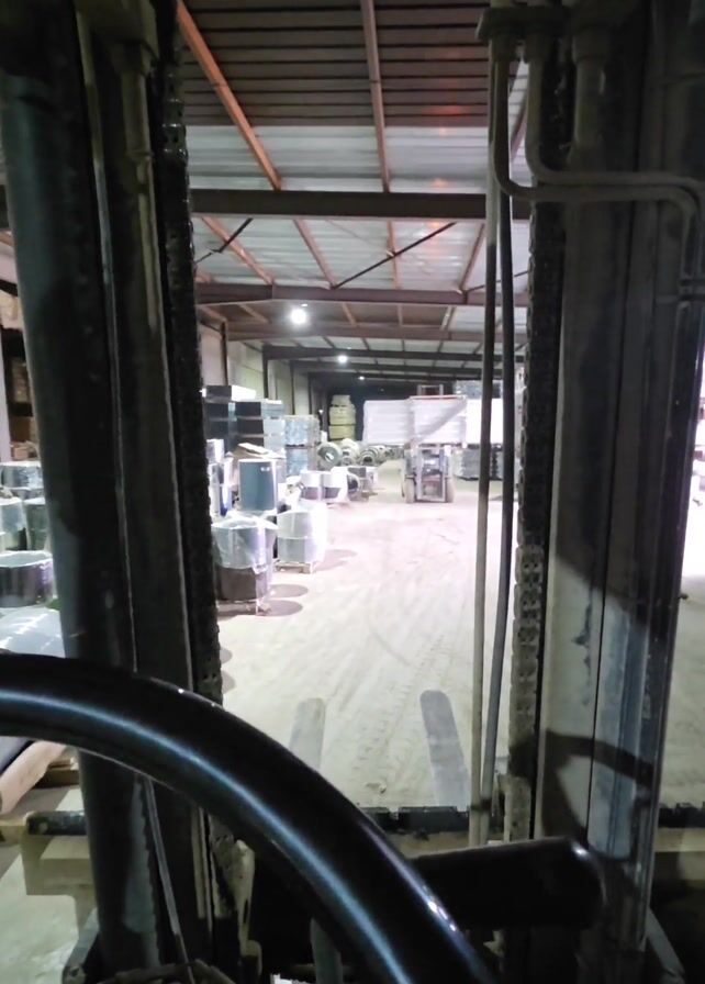 perspective of a forklift operator inside a warehouse