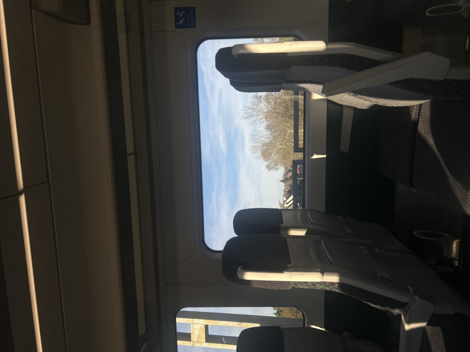 - "The image displays the interior of a train carriage in Dacorum, United Kingdom, with a view of the outside environment through its windows" by FM-PtehC2, licensed under CC BY 4.0
