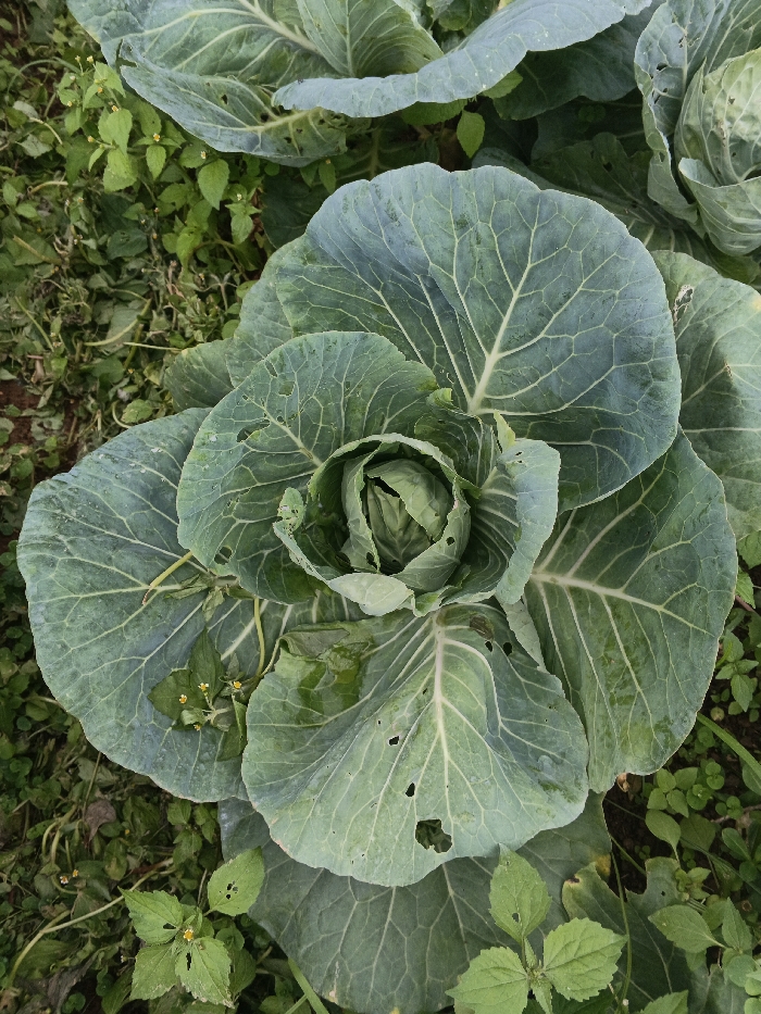 - "An overhead view depicts a single, mature green cabbage plant centrally positioned in an outdoor agricultural field in Candelaria, Philippines" by FM-0BBQ13, licensed under CC BY 4.0