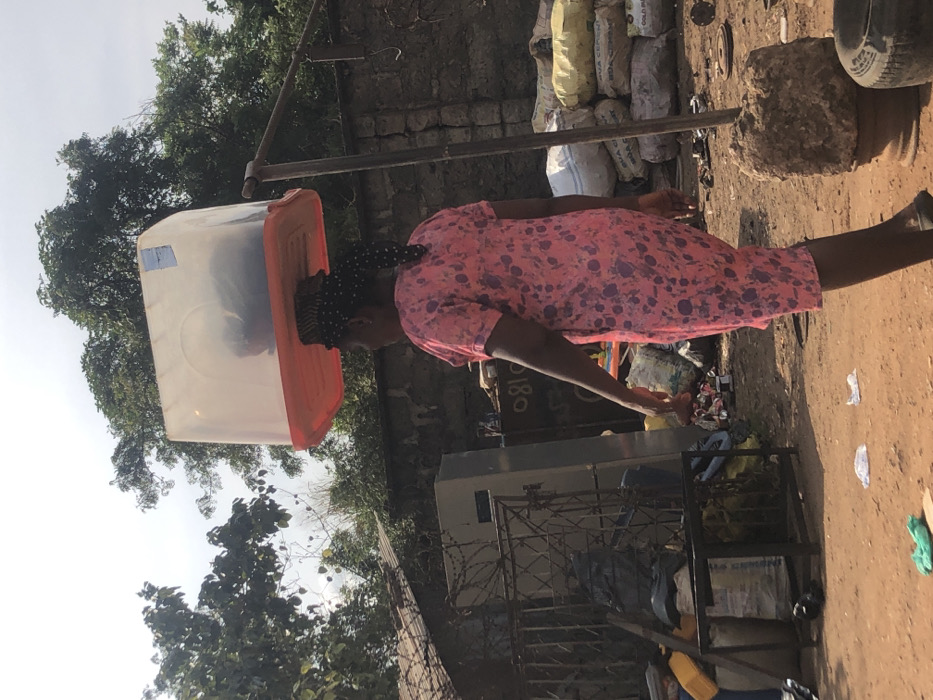 - "A woman in a pink floral dress stands outdoors with a large plastic container over her head" by FM-vpNng1, licensed under CC BY 4.0