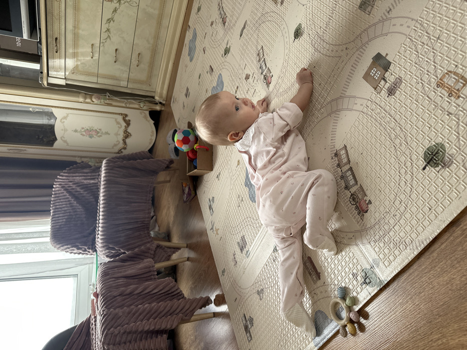 - "A baby wearing a pink onesie lies on a play mat with a road and vehicle design" by FM-keT4P2, licensed under CC BY 4.0