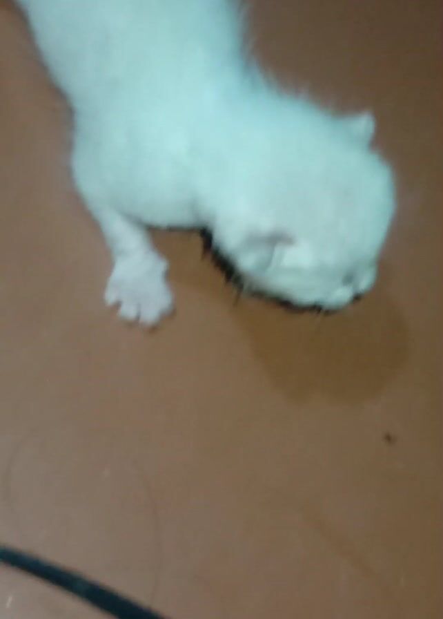 - "A small, mostly white kitten lies on a brown tiled surface" by FM-xUvng2, licensed under CC BY 4.0