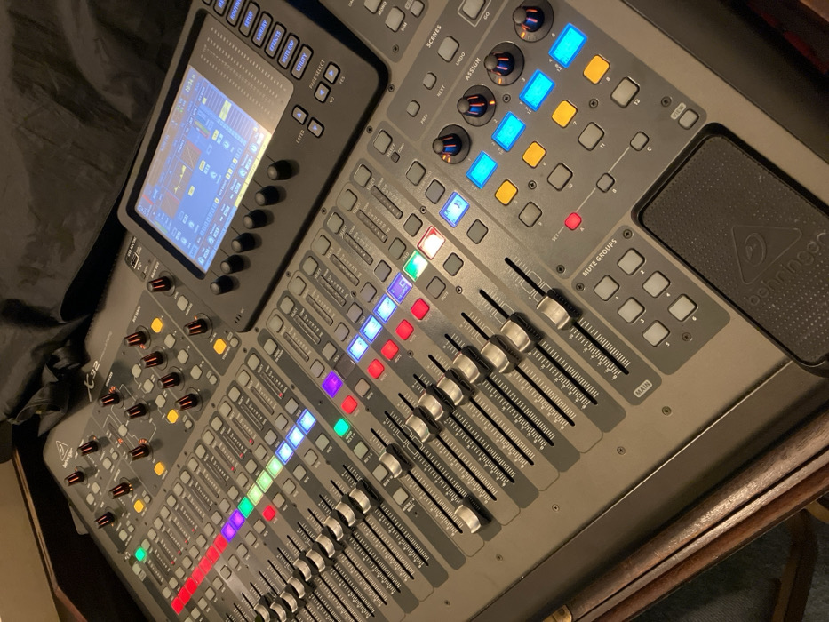 - "A powered-on Behringer X32 digital audio mixing console is depicted in an indoor setting within the city of Ipswich, United Kingdom" by FM-nbjkJ2, licensed under CC BY 4.0