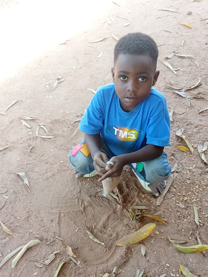 - "A young Black male child is depicted squatting on reddish-brown dirt ground, located in Akwanga, Nigeria" by FM-0e8Bh2, licensed under CC BY 4.0