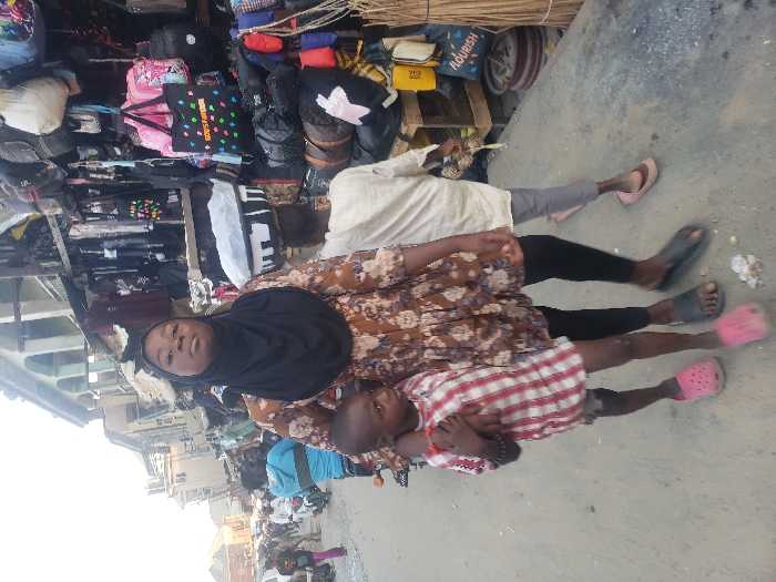 This image captures an outdoor street scene in a bustling market area of Suleja, Nigeria, illuminated by bright daylight