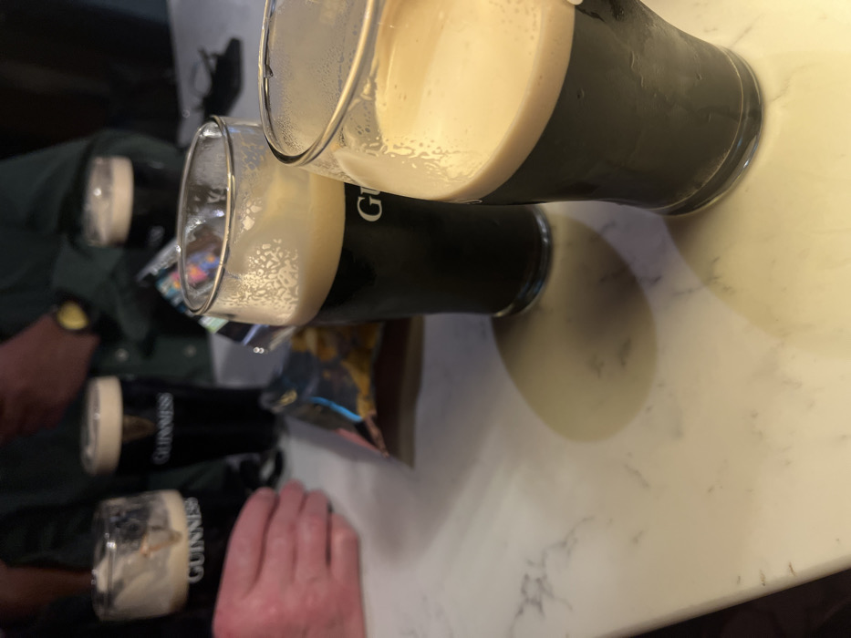 - "Four glasses of Guinness are shown on a marble-like surface, partially obstructed by hands and a dark green garment" by FM-49enB2, licensed under CC BY 4.0