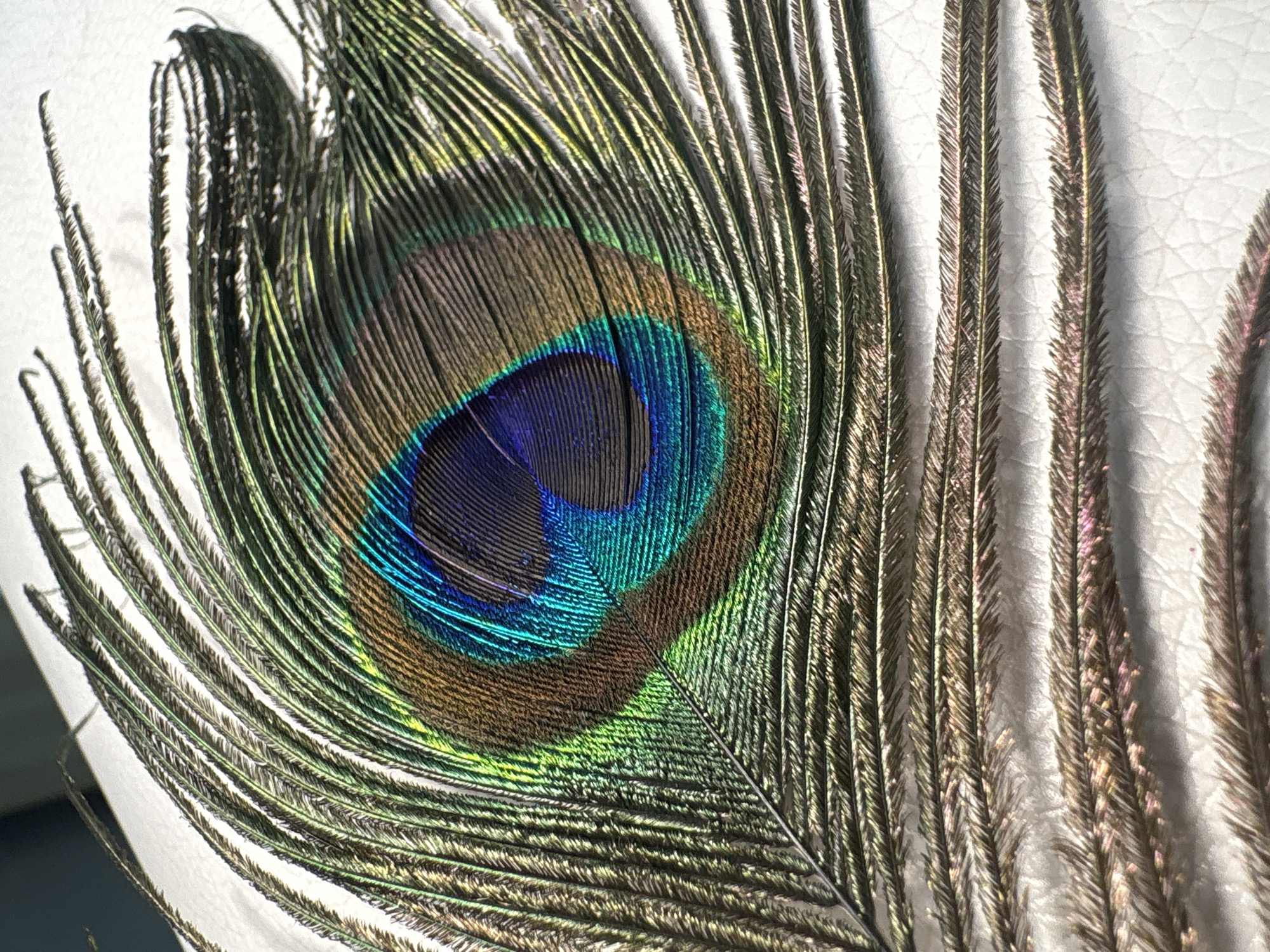 close-up of a peacock feather