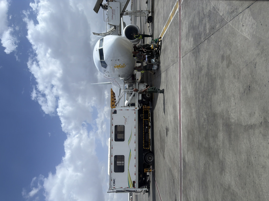 - "The image displays an airport tarmac scene at Bole International Airport in Addis Ababa, Ethiopia, under a blue sky with scattered cumulus clouds" by FM-Uz1Dk1, licensed under CC BY 4.0