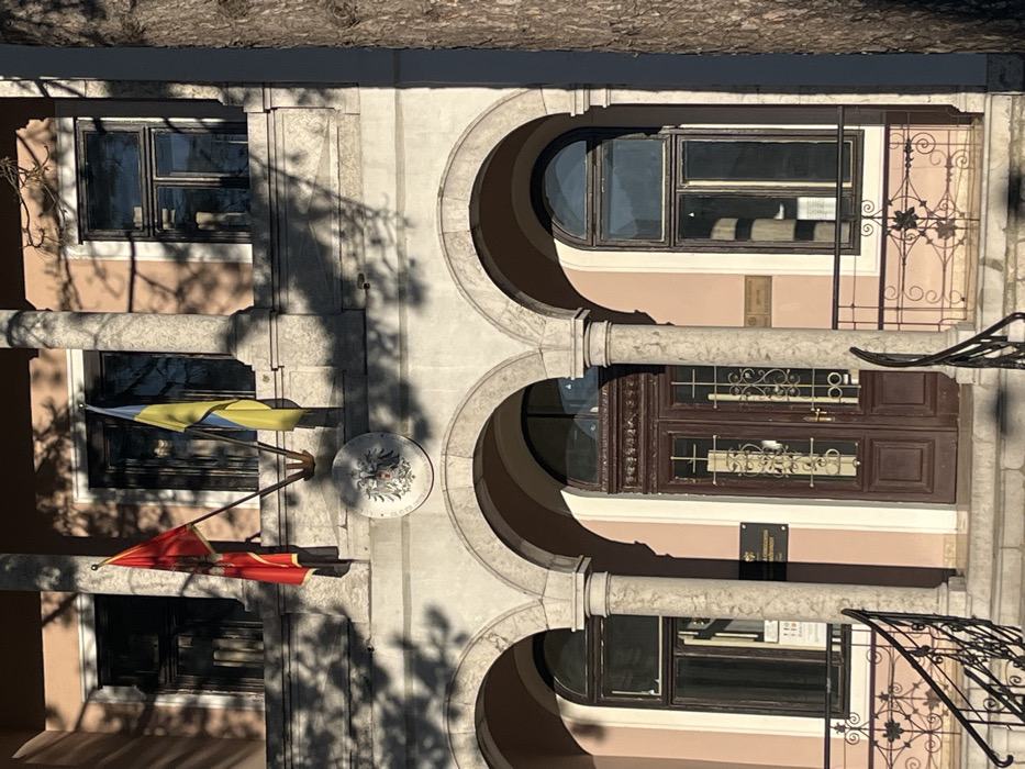 - "The image depicts the front facade of the Ministry of Foreign Affairs building in Cetinje, Montenegro, specifically located on Bajova ulica" by FM-rOKEu2, licensed under CC BY 4.0