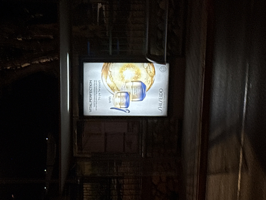 - "A rectangular advertisement, brightly lit, displays Shiseido's "Vital Perfection" skincare products" by FM-uwGu03, licensed under CC BY 4.0