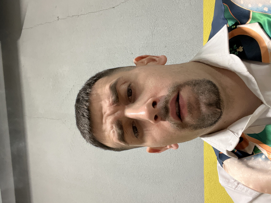 The image displays a close-up, frontal portrait of an adult male
