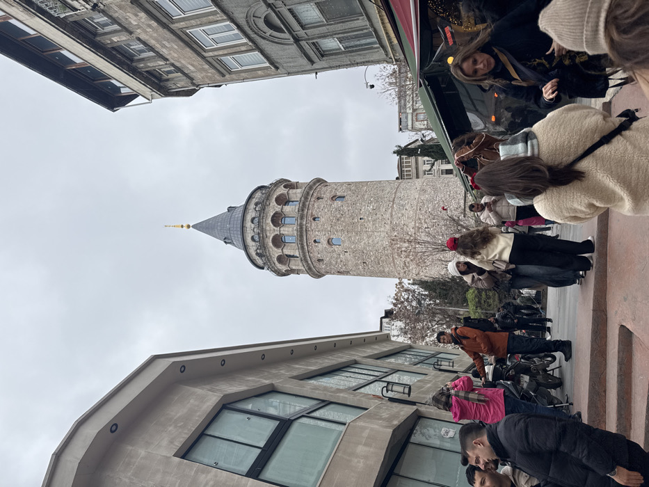 - "The image depicts a crowded street scene centered on the Galata Tower in Beyoğlu, Istanbul, Turkey, under an overcast sky" by FM-E68DV2, licensed under CC BY 4.0