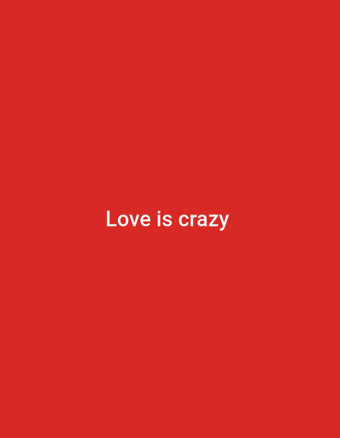 A red background dominates the image, against which the phrase "Love is crazy" is displayed in white, centered horizontally and vertically