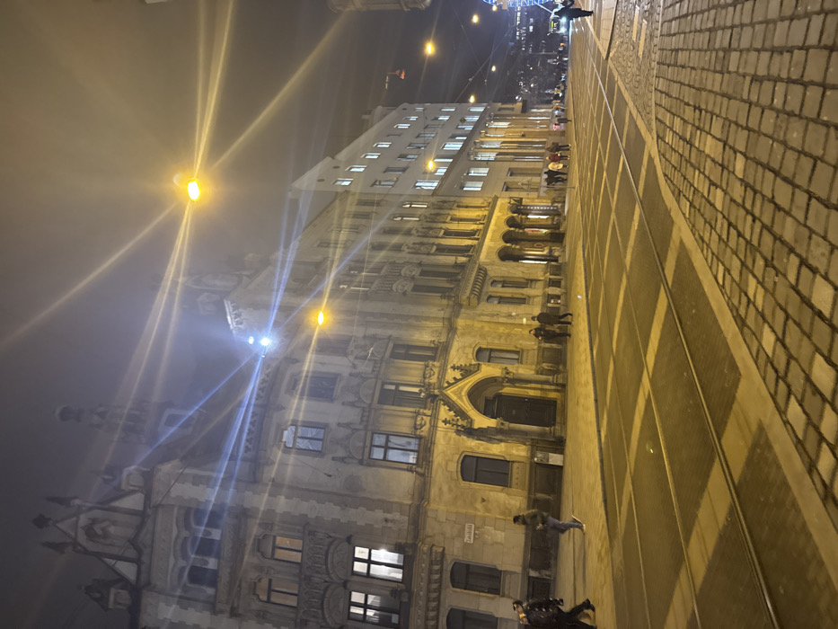 - "A nighttime street scene features a tall, ornate building with a mix of architectural styles, including Gothic elements" by FM-nRr0I2, licensed under CC BY 4.0