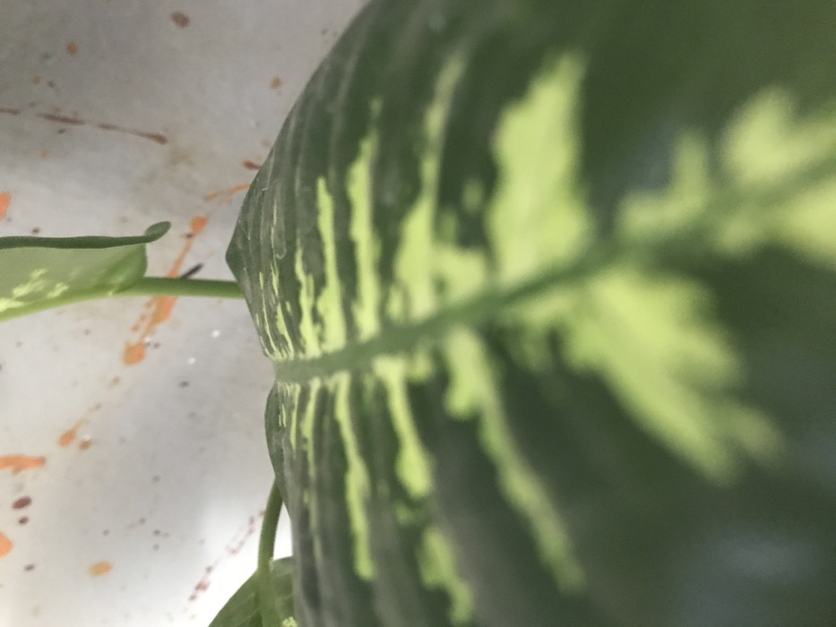 - "The image displays a close-up, low-angle perspective of a variegated plant leaf, likely from a Dieffenbachia, located on Rukuba Road, Nigeria" by FM-ehv3k2, licensed under CC BY 4.0