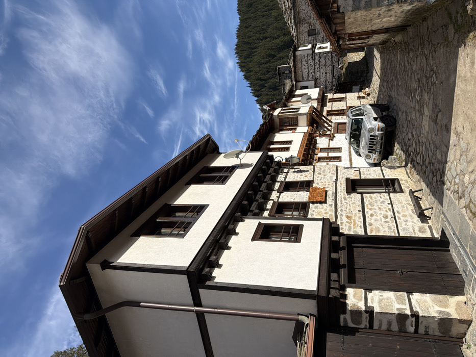 - "The image depicts a narrow cobblestone street in Shiroka Laka, Bulgaria, lined with traditional Bulgarian Revival-style houses under a bright blue sky with scattered cirrus clouds" by FM-3q1Os1, licensed under CC BY 4.0